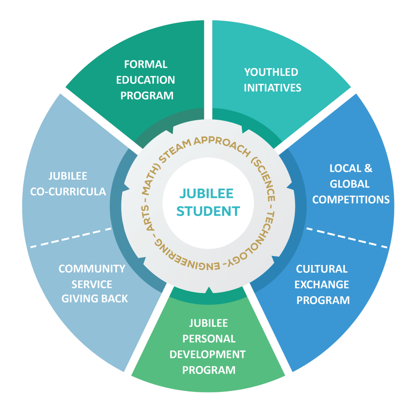 The school offers a comprehensive educational program to enhance problem solving skills, critical thinking, and civic responsibility through enriched academic curricula, personal development program and extensive co-curricular activities, utilizing blended learning and a STEAM (science, technology, engineering, arts and math) approach, the students are equipped with the knowledge, skills and attitudes required for the 21st century. The school’s syllabus is based on the philosophy that successful learning takes place through exploration and experimentation, rather than through a rigid transmission of facts from teacher to student. The curriculum employed by the school enhances students problem-solving and decision-making abilities. Teachers apply interactive and challenging methods of teaching, and classrooms and laboratories are equipped with the latest technologies and educational tools. Students are provided with access to programs and resources appropriate for their abilities in a unique learning environment in which they can thrive.The Jubilee School fosters human talent, promotes cross-cultural understanding, and educates new leaders grounded in democratic values, tolerance, and community service. By enhancing students’ academic and social skills, the school creates a synthesis between education and leadership and prepares them to enter the nextstage of their lives as responsible, action-oriented, knowledgeable, and engaged citizens. An integral part of this model is the ‘graduation project’, a prerequisite to graduation where students are mentored to acquire research skills and to initiate and develop a prototype for innovative business ideas that responds to local and global challenges. Additionally, students participate annually in several national and international exchange programs, debates, competitions, and conferences. These experiences allow students to interact with global peers, subject experts,and role models from around the world.